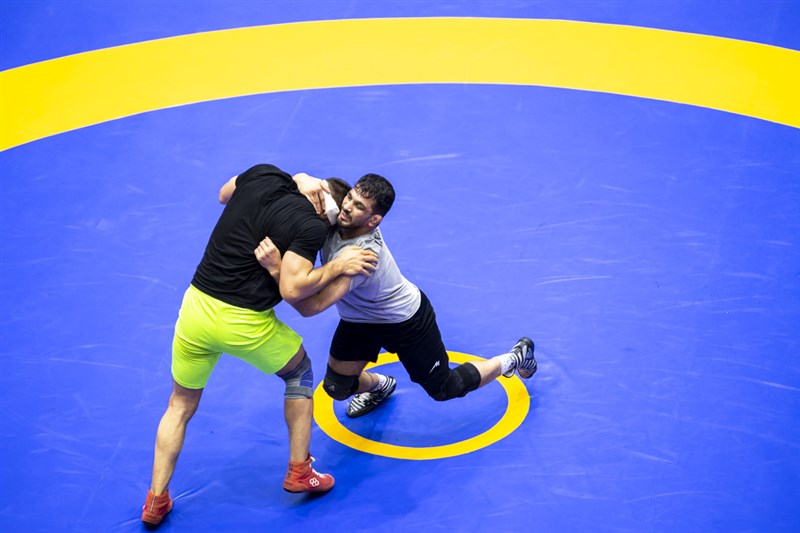برپایی تمرین تیم ملی کشتی آزاد بزرگسالان در خانه کشتی شهید ابراهیم هادی