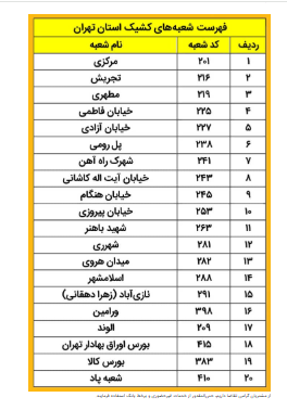 به گزارش خبرنگار اقتصادی پایگاه اطلاع رسانی ستارگان به نقل از روابط عمومی بانک پاسارگاد، به اطلاع مشتریان گرامی میرساند، با توجه به تداوم سرما و برودت هوا و بر اساس اعلام استانداری محترم تهران، ابلاغیه کانون بانکها و مؤسسات اعتباری خصوصی، واحدهای ستادی و شعبههای استان تهران در تاریخ ۲۵ آذرماه تعطیل میباشد، شایان ذکر است ارائه خدمت به مشتریان گرامی در روز یاد شده توسط شعبههای کشیک مطابق با جدول ذیل از ساعت ۹ تا ۱۲ انجام خواهد شد.